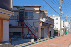 円寂と半蔵が10個のブロックを並べようとしていたアパートの前